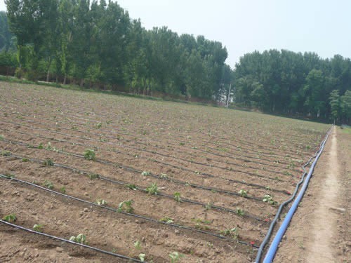 ● 內(nèi)鑲式滴灌管采用紊流流道,具有一定的補(bǔ)償作用,平地上