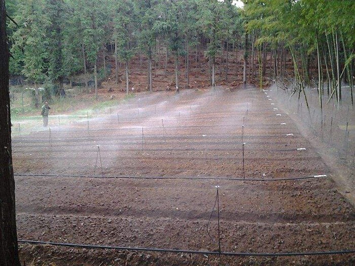 一般只用于灌水次 數(shù)頻繁、經濟價值高的蔬菜和經濟作物的灌溉。半固定式噴灌系統(tǒng)動力、水泵固定,輸(配)水 干管(分干管)埋入地下,工作支管和噴頭可以移動,由 連接在干管(分干管)伸出地面的給水栓向支管供水。